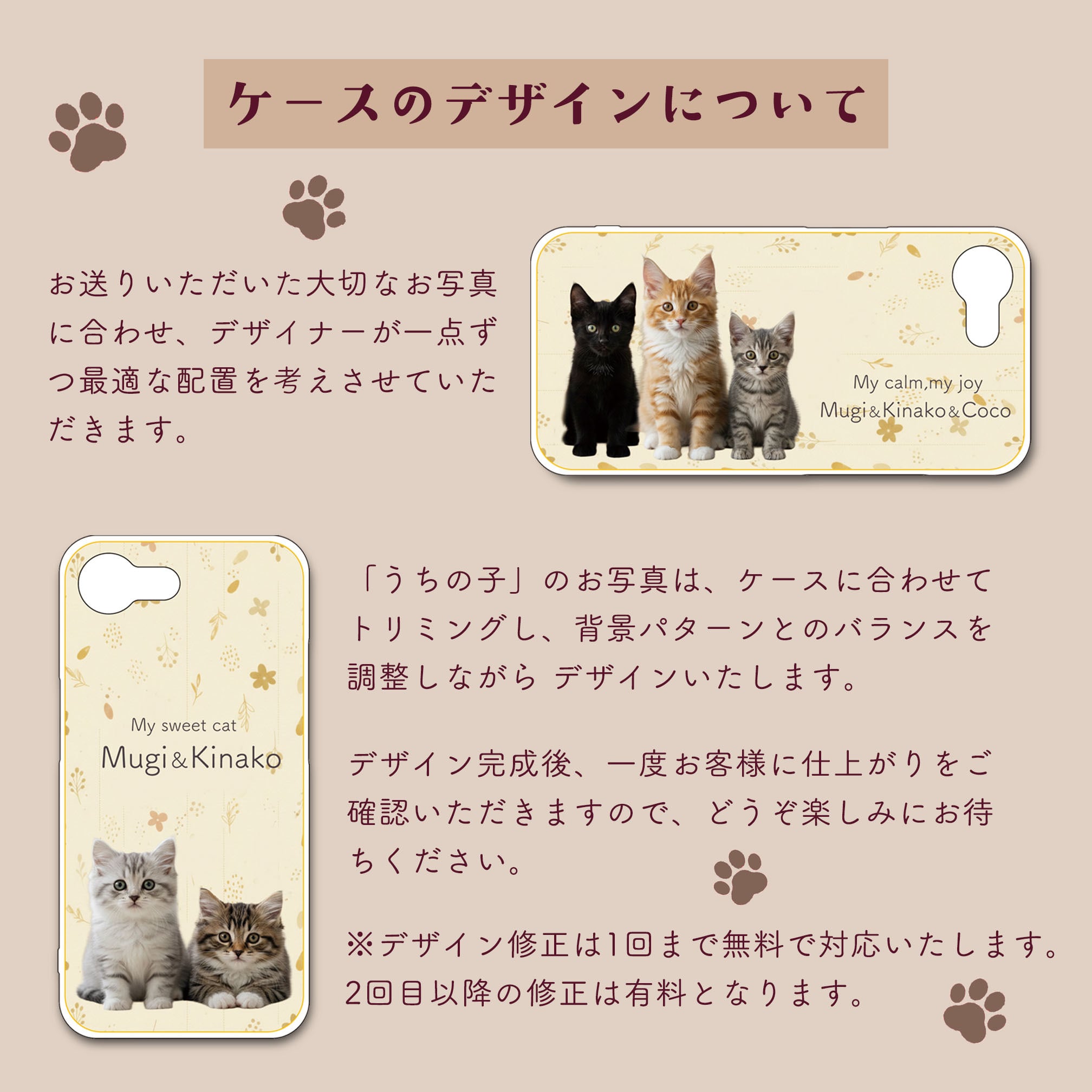 そんな想いを形にするため、可愛いうちの子とぬくもりを感じられるデザインを組み合わせた特別なケースをご用意しました。