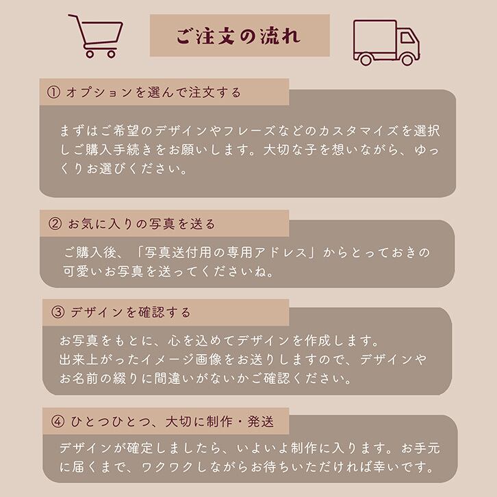 スムーズな制作のため、お早めのお写真送付にご協力いただけますと幸いです。