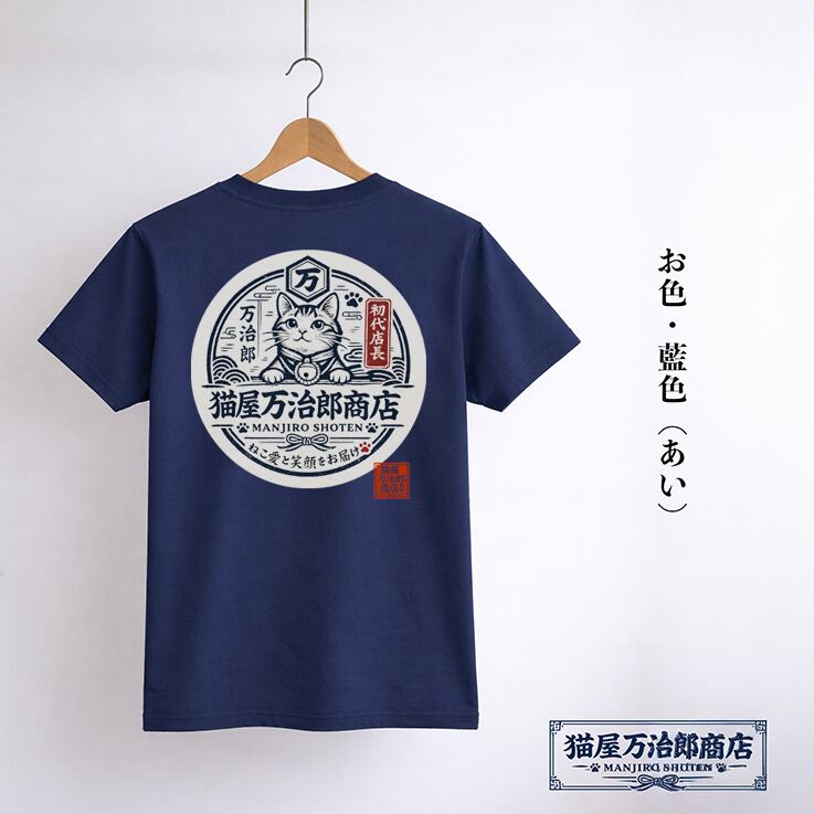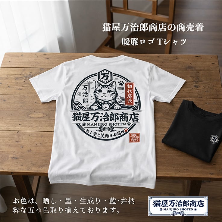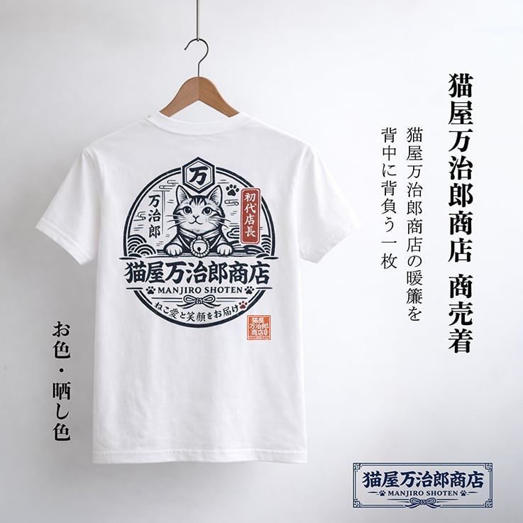 【猫屋万治郎商店 商売着】 ー 背中に暖簾を背負う一枚。ー Manjiro Shoten T-Shirt (Noren Style)