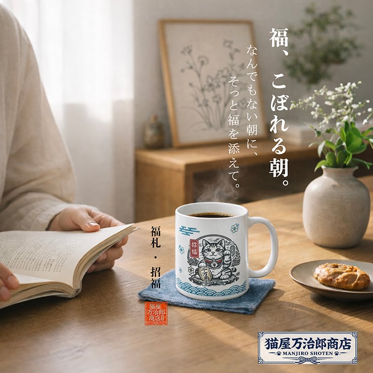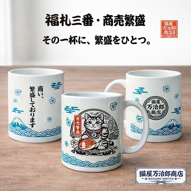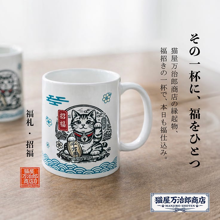 【福仕込み 猫屋郎商店の一杯】― 一服の間に、福ひとつ ― (マグカップ)